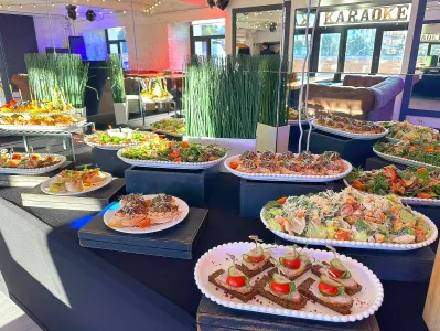 Подумайте об атрибутах, которые могут украсить столы. Позволить приглашенным почувствовать себя особенными. Разработайте концепцию декора, которая отражает ваш стиль. Оформление столов, залов, цветовые решения, дополнительные декоративные элементы могут создать атмосферу, которая будет соответствовать вашим ожиданиям. Разнообразное, вкусное банкетное меню - залог успеха. Также не забудьте о выборе напитков: алкогольные, безалкогольные напитки должны быть представлены в достаточном ассортименте для удовлетворения разнообразных вкусов.