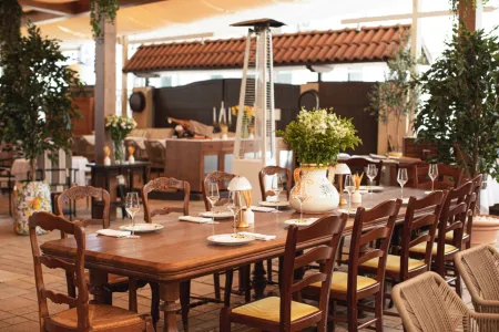 В теплое время года Bistrot открывает легендарную летнюю веранду в средиземноморском стиле. Обновленное архитектурным бюро Archpoint патио с лимонными деревьями, журчащим фонтаном, зеленью и парящими парусами под потолком напоминает уютный сицилийский дворик, вмещающий до 110 человек банкетом. Веранда Bistrot словно создана для идеальной свадьбы в итальянской концепции или дня рождения в эстетике Dolce Vita.