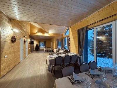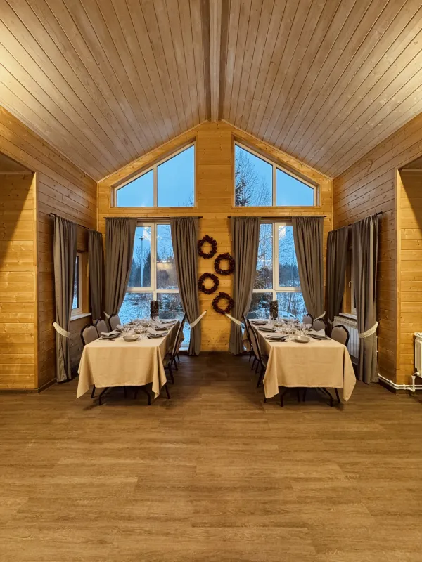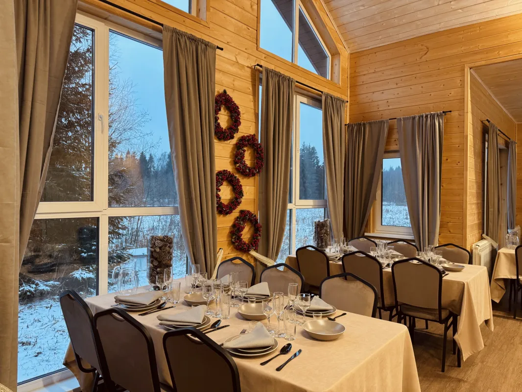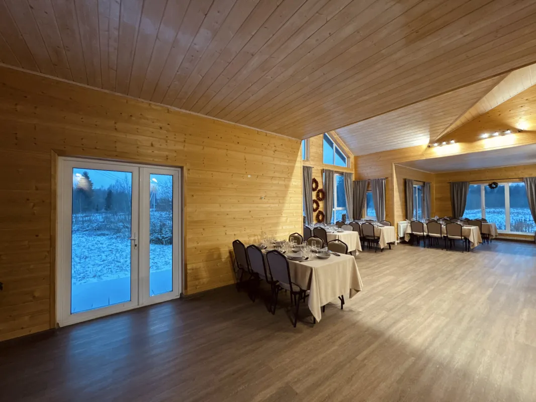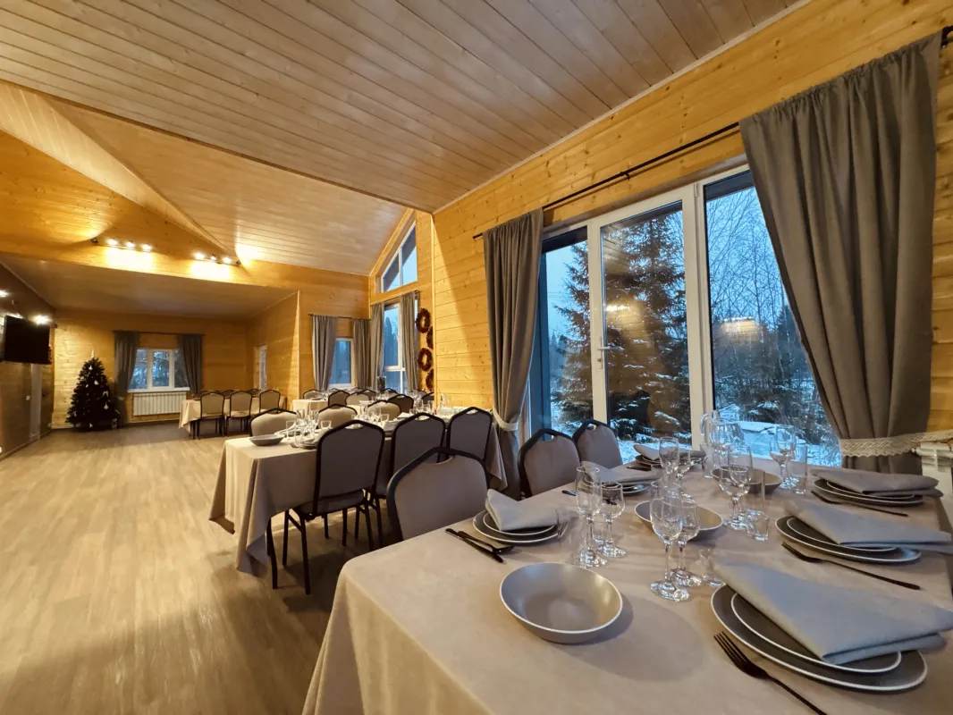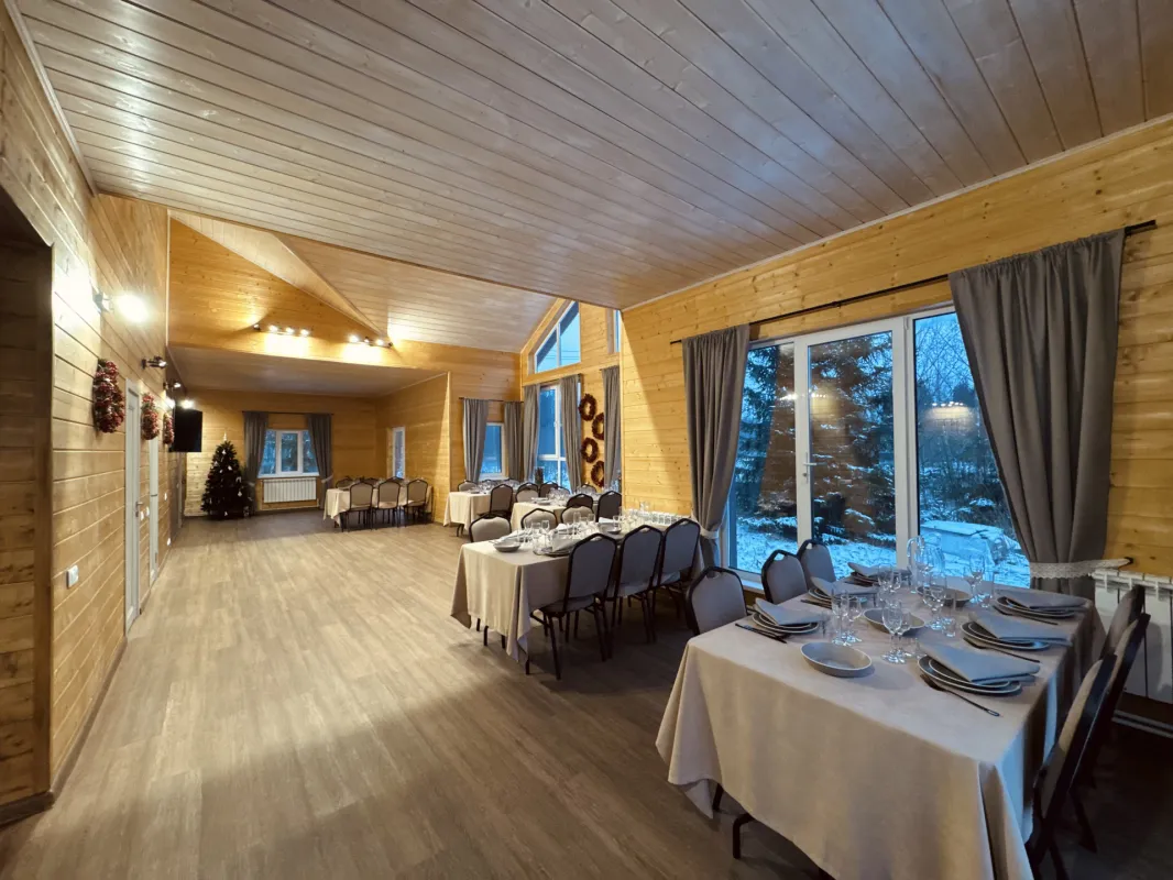 Банкетный зал в Подмосковье, это отдельный дом на поляне, окруженной лесом. Уютный, теплый, с панорамными окнами. Расположен в 86 км от Москвы по Новорижскому шоссе. Foresthall — это приватная площадка для проведения мероприятий, расположенная в живописной лесной зоне (Московская область, г. о. Клин, деревня Степаньково).