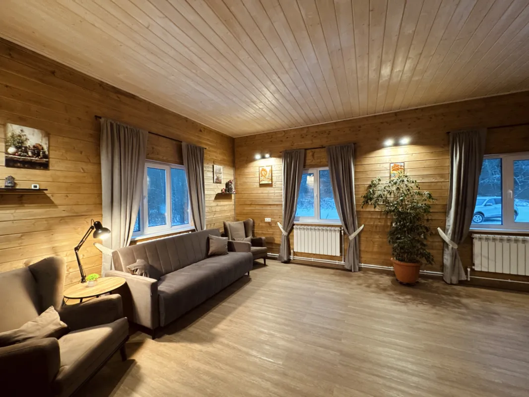 абсолютная приватность: здание стоит отдельно на собственной поляне, без соседних построек;