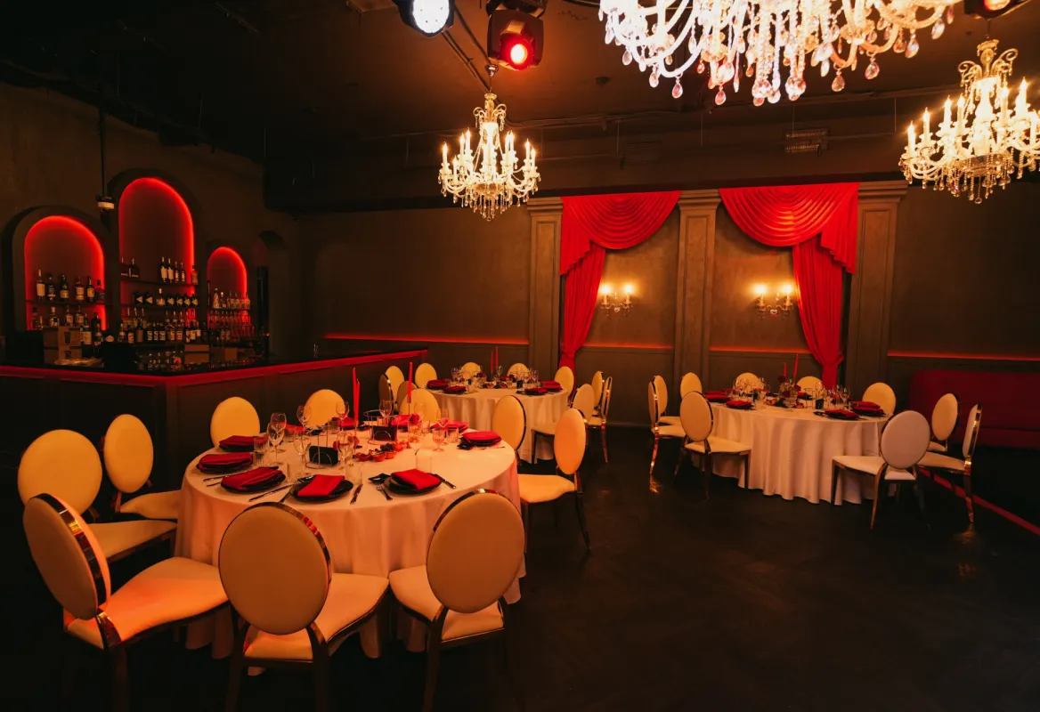 Мягкое, многоуровневое освещение с возможностью настройки под настроение мероприятия.