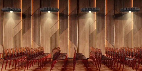 Малый зал на 100 мест, который подходит для камерных встреч и семинаров.